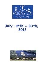Pinnacle Dance Camp July 15th - July 20th, 2012 |